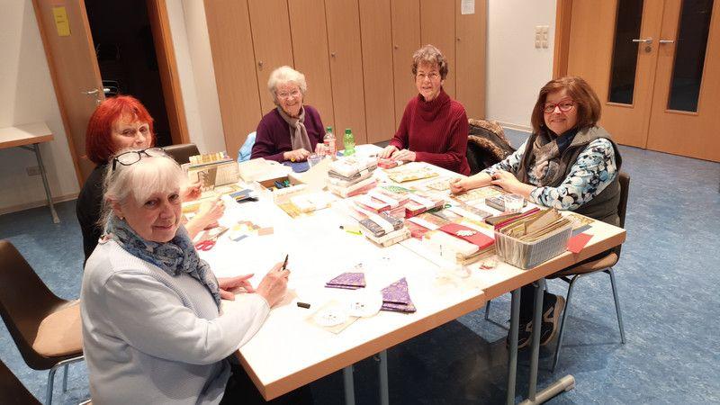 Jeden zweiten Mittwoch (außer in den hessischen Schulferien) treffen sich um 19:00 Uhr im Gemeindehaus Frauen zum basteln, werkeln und handarbeiten. Sie fertigen kunsthandwerkliche Dinge an, die bei verschiedenen Veranstaltungen, z.B. am 3. Advent beim Basar rund um das Konzert zum Kauf angeboten werden.