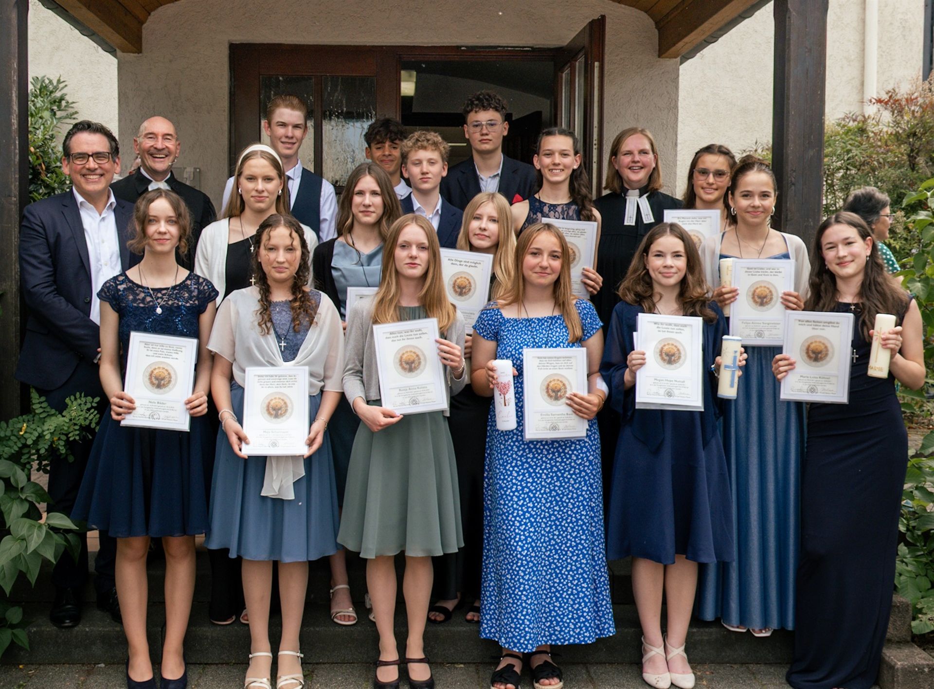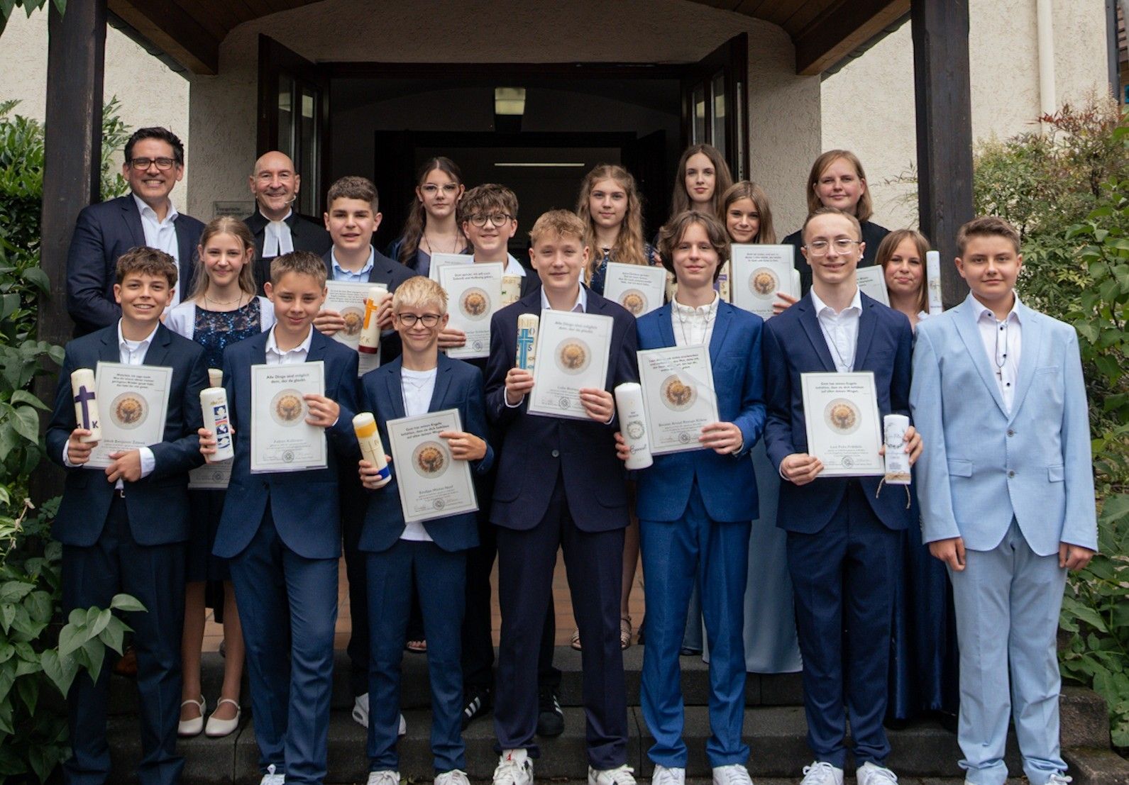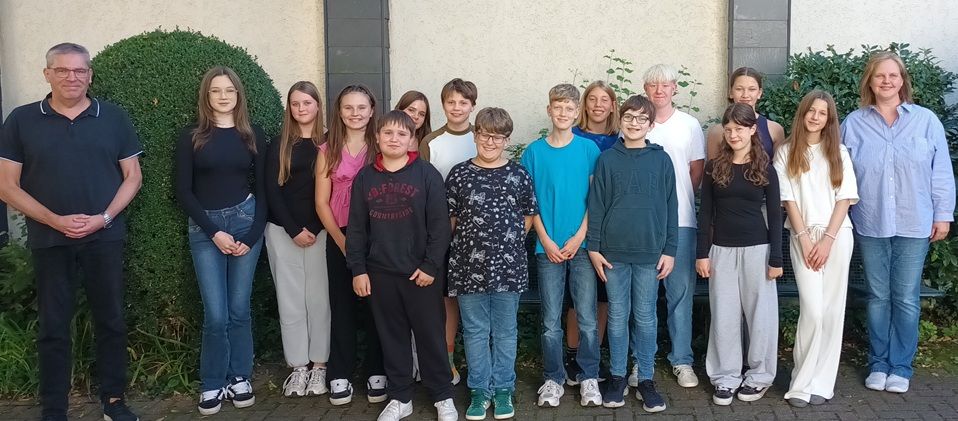 Für 19 Jugendliche (Johanna Born, Emma Faust, Josefin Violetta Franke, Tessa Gehrmann, Greta Gutt, Luise Haar, Simon Hanel, Ida Holub, Nele Kämper, Marvin Klingenfuß, Franz Markutzik, Timo Meyer, Marie Sophie Neumeier, Milena Reichelt, Paul Schiwek, Lasse Schnetz, Max Wagner, Samuel Weth und Leni Wörndle; nicht alle im Bild) hat im Sommer der kirchliche Unterricht begonnen. Beim Sommerfest wurden sie von der Gemeinde begrüßt; die Konfirmationsgottesdienste werden am 20. und 21. Juni 2026 gefeiert.