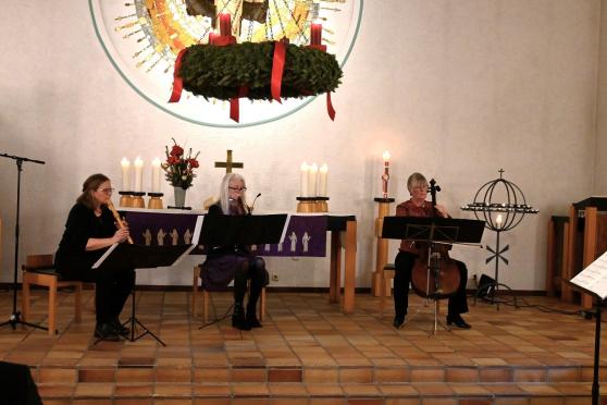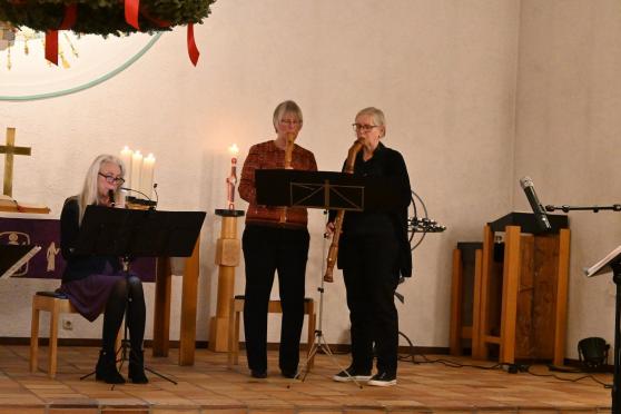 So gab es Chormusik des Krifteler Singkreises und des Eppsteiner Ensembles Vox Vallis, ein Blockflötenensemble und ein Ukuleleduo spielten auf und es gab auch zwei Lesungen - eine eher melancholische und eine heitere. Der krankheitsbedingte Ausfall des Sängers Klaus Gallenbacher wurde durch zwei kurzfristig eingeschobene Flötenstücke aufgefangen, die Jan Szymanski zum Besten gab. Und auch die Konzertbesucher bekamen reichlich Gelegenheit, bekannte Advents- und Weihnachtslieder mitzusingen.