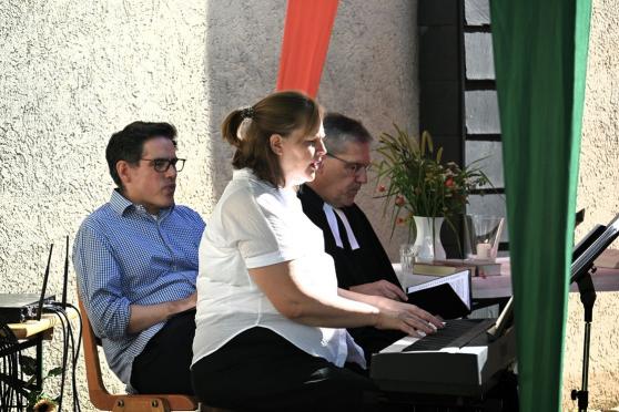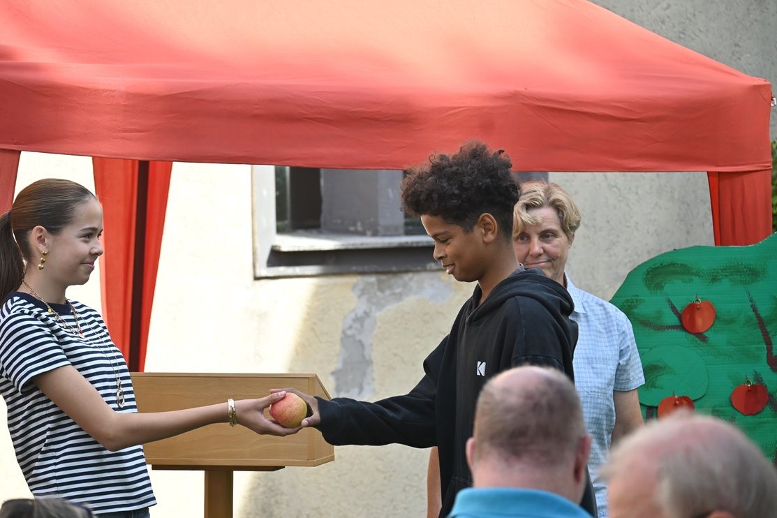 Das Gemeindefest am 6. September stand ganz im Zeichen des Apfels - die Predigt, die Podiumsdiskussion, die Pantomime, die Quizfragen, die Dekoration und viele Lieder der Gemeinde und des Singkreises. Ebenfalls gab es beim reichhaltigen Buffet einige Salate mit Äpfeln und auch beim Kuchenbuffet am Nachmittag waren mehrere Apfelkuchen vertreten.