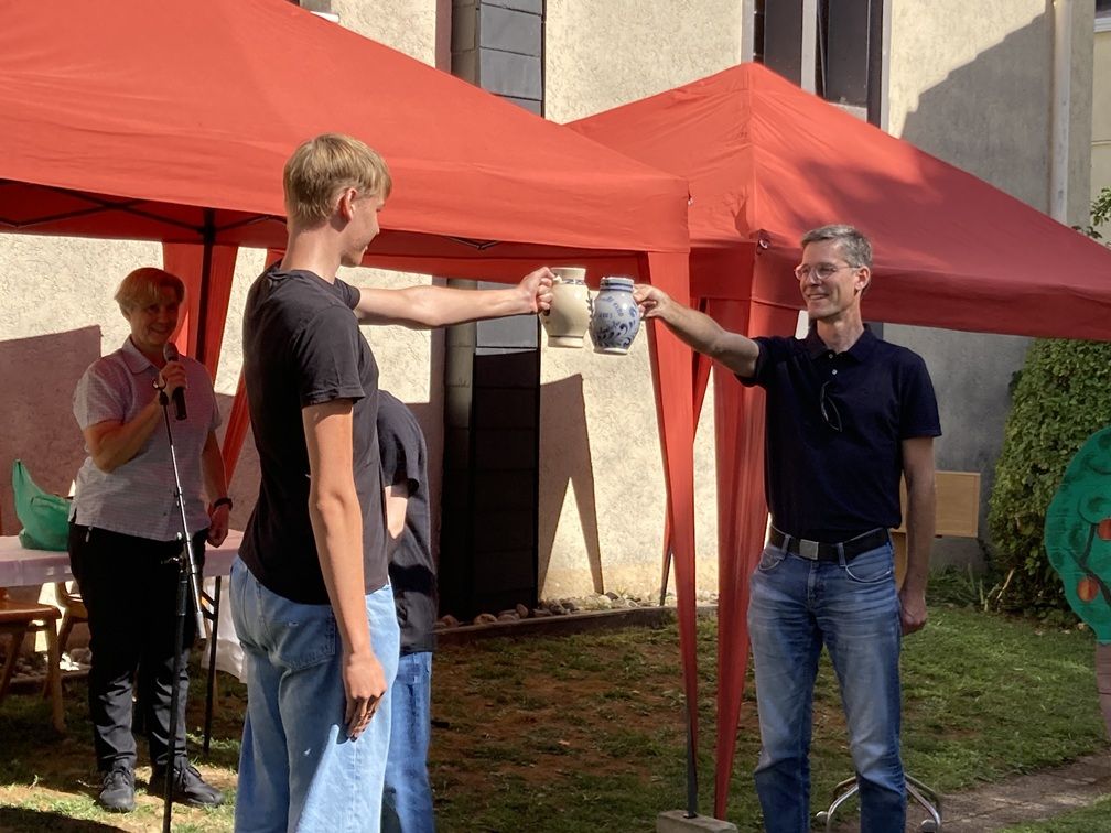 Um etwa 17:00 Uhr endete das kurzweilige Fest mit einem Segen durch Pfarrer Schellenberg. „Es ist nicht selbstverständlich, dass man in Vakanzzeiten ein Gemeindefest organisiert, darauf kann man stolz sein“, war seine Botschaft an die Auferstehungsgemeinde. Ja, das Fest war sehr gelungen, rund und schön, wie ein perfekter Apfel.