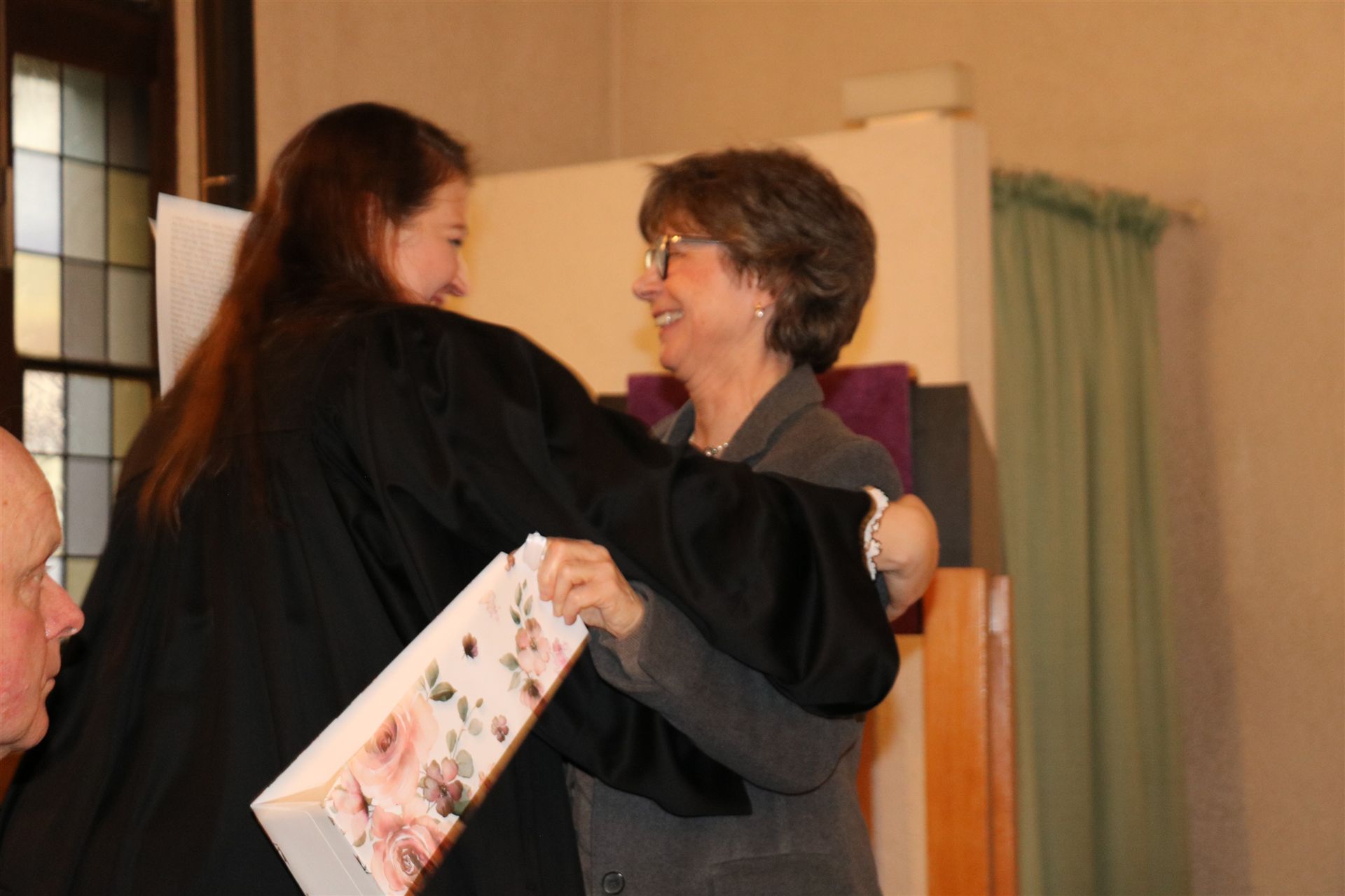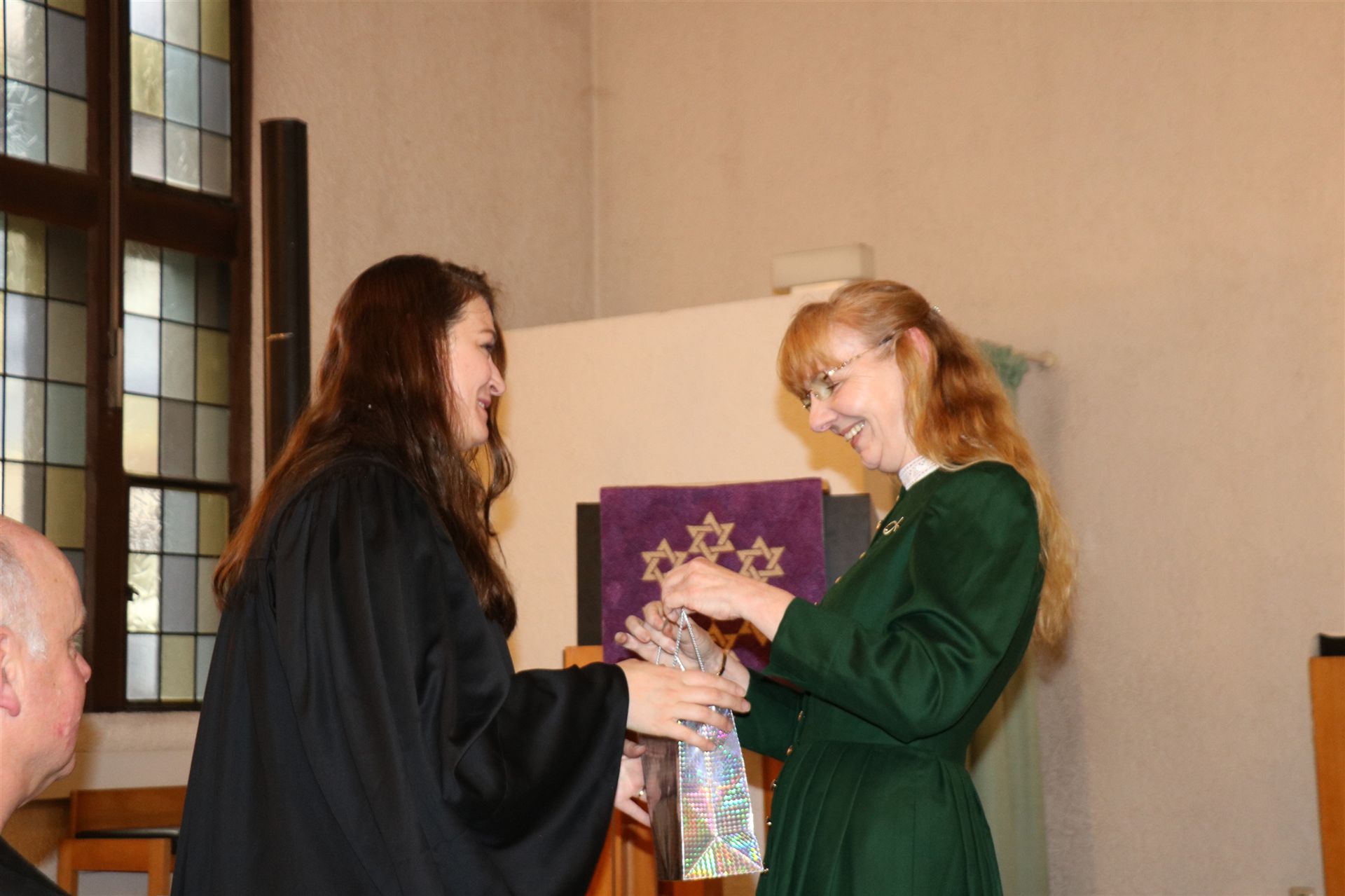 Mitreißend waren die Worte von Pfarrer Hannemann aus der Erlöserkirche in Bad Homburg, der Melanie Khalil in ihrem Vikariat begleitet hatte: „Sie ist ein Muster an Enthusiasmus und Authentizität, sie hat sich klasse eingebracht. Solche Personen laufen einem nicht oft über den Weg.“