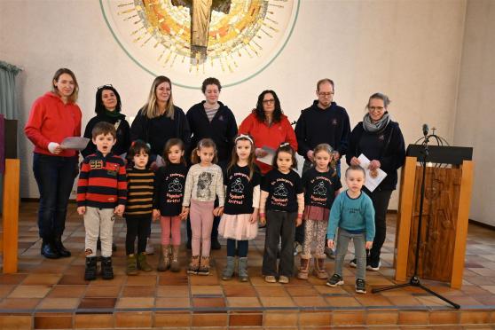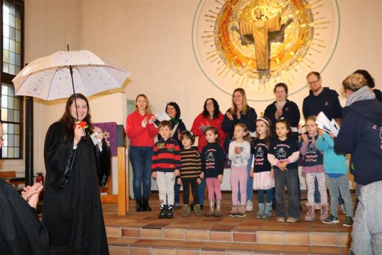 Erfrischend war der Chor der Evangelischen Kita Vogelnest anzusehen. Er überbrachte seine Grüße singend. „Hallo, herzlich willkommen“ und du bist ein „Volltreffer“, hieß es da.