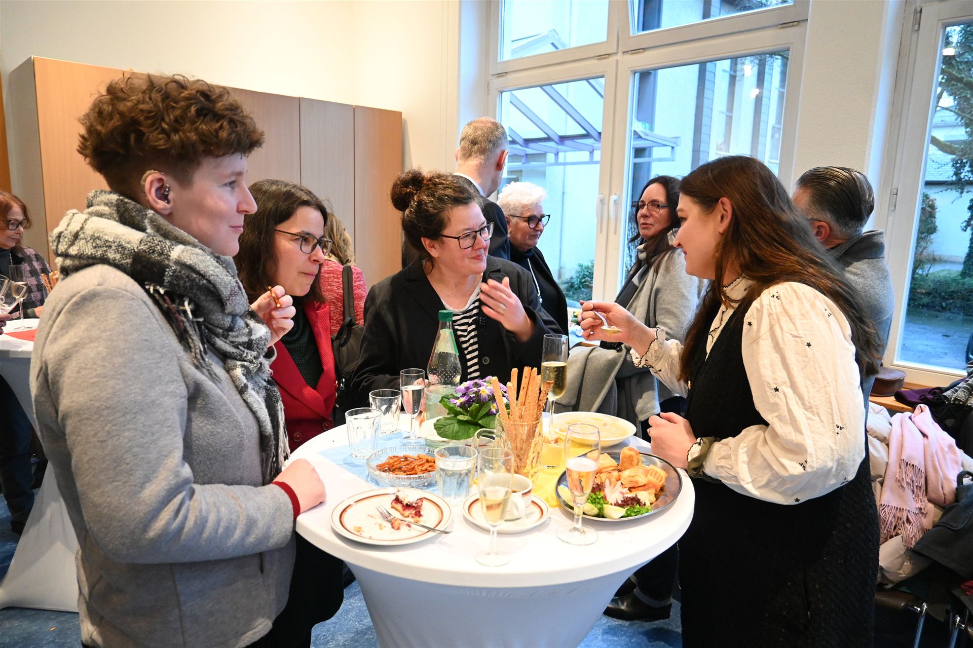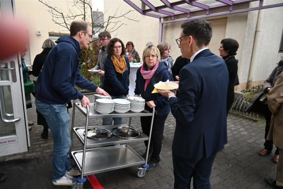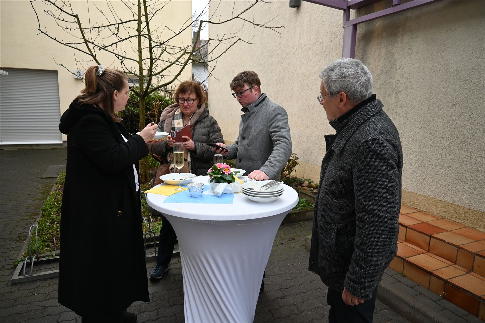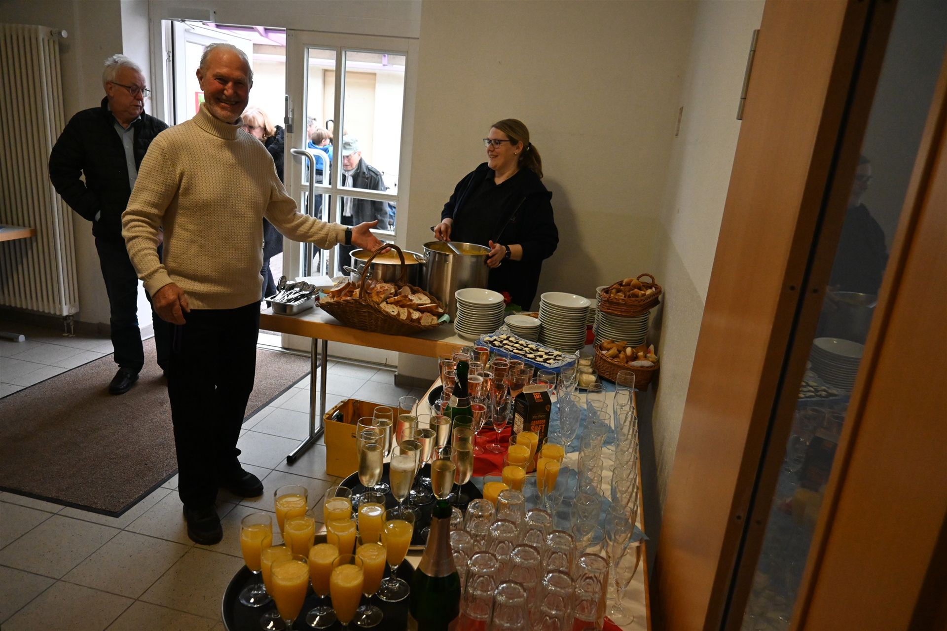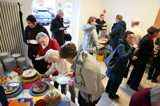 Anregend waren die Gespräche beim Empfang nach dem Gottesdienst. Ein Team von Ehrenamtlichen hatte alles wunderbar vorbereitet, Kuchenbuffet, Knabbereien auf den Tischen, Kaffee, Sekt und Suppe.