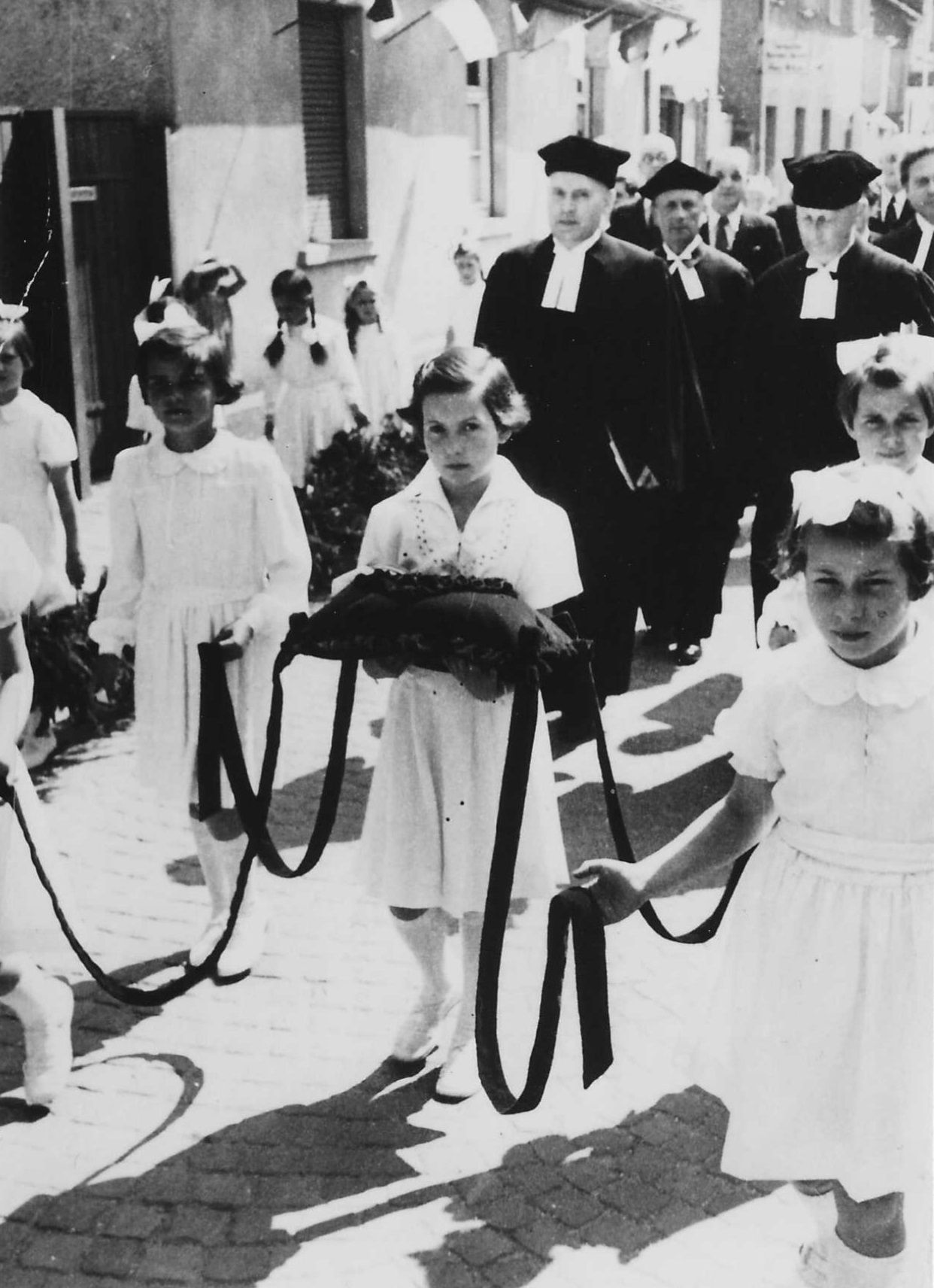 1952 folgte dann die Grundsteinlegung in Anwesenheit von Dekan Nixdorff aus Diedenbergen. Die beigelegte Urkunde endet mit den Worten: